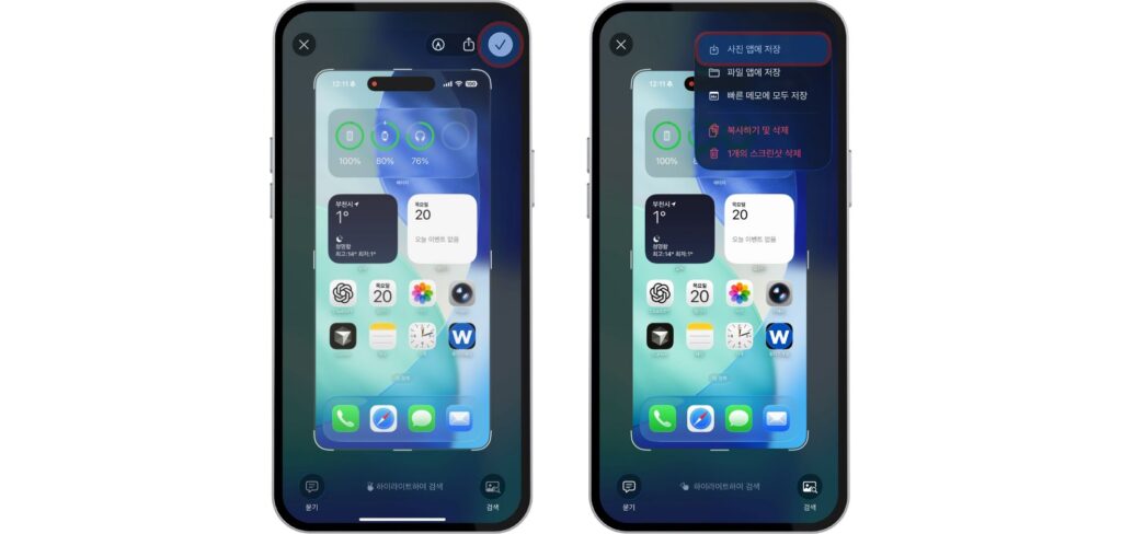 • ‘사진 앱에 저장’ 선택